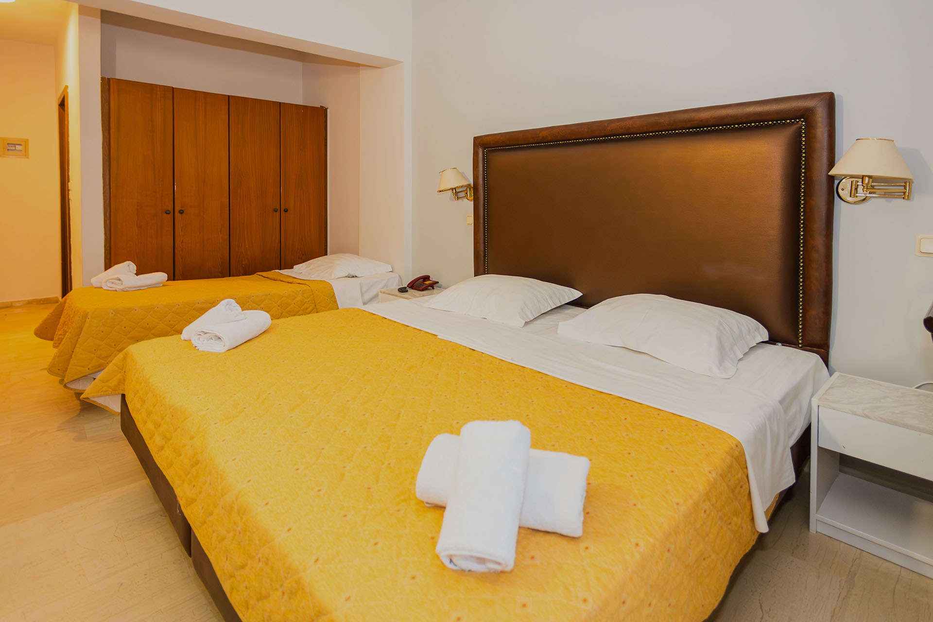 Το τρίκλινο δωμάτιο με μερική θέα προσφέρει μια άνετη και φιλόξενη λύση για οικογένειες ή παρέες. Με ένα διπλό και ένα μονό κρεβάτι (ή τρία μονά κατόπιν αιτήματος), αποτελεί ιδανική βάση για να εξερευνήσετε την Παλαιά Επίδαυρο.